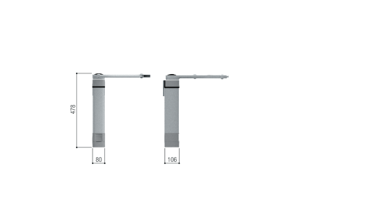 - Pentru instalatii la porti cu stalp cu latime minima (incepand de la 8 cm) chiar si in spatele unui perete sau al unui gard, datorita optiunii cu brat drept.
