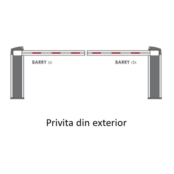 Bariera auto stradala Proteco BARRY SX este o solutie electromecanica de control al accesului vehiculelor, conceputa pentru trafic intens la intrari rezidentiale, parcari si zone multi-utilizator. Versiunea SX (stanga) este destinata instalarii pe partea stanga a carosabilului, bratele deschizandu-se spre dreapta.