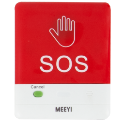 Y-FS2-WR este un boton de panica wireless pentru pacient, cu functie de apelare si anulare. Butonul de apelare pozitionat central si de dimensiuni mai mari are functia SOS (apelare in caz de urgenta), iar cel de dimensiuni mai reduse are functia CANCEL (anulare).