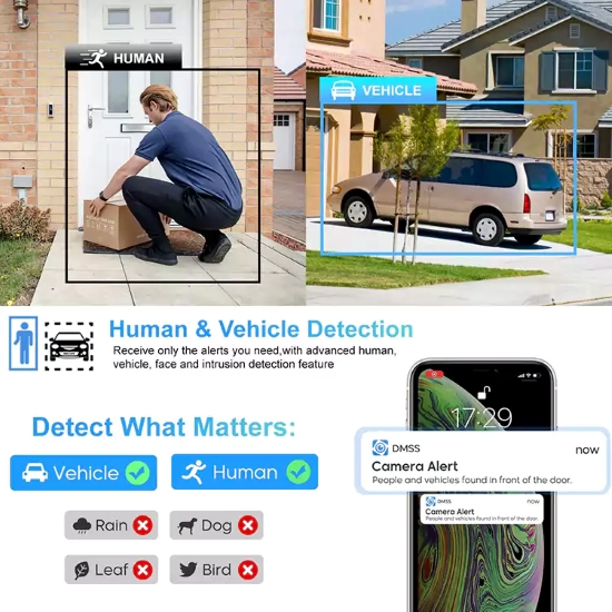 Aceasta camera de supraveghere dispune de alarma cu sunet de sirena si lumina rosie/albastra. Acelasi sistem de descurajare activa va preveni evenimentele infractionale. In plus, datorita algoritmului de invatare profunda, sunt prevenite alarmele false.