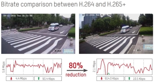 | Comprimare imaginiStandardul H.265+ permite o comprimare eficienta a imaginilor, fiind salvat mai mult spatiu de stocare. Se vor obtine inregistrari cu aceeasi claritate, insa la dimensiuni reduse. |  | |