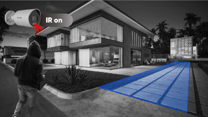 Spre deosebire de functia BLC (compensarea luminii din spate), functia True WDR oferita de senzorul inteligent compenseaza atat imaginea din prim plan, cat si imaginea de fundal. Astfel, toate detaliile devin mai clare si te poti bucura de o supraveghere mai buna a perimetrului in orice conditii.
