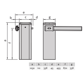 Corp bariera MAXIMA ULTRA 36 BT este alimentat la 230V si dispune de o putere de 370W, oferind timpi de deschidere si inchidere extrem de rapizi, intre 0.7 si 3.9 secunde, in functie de lungimea barei. Cu o capacitate impresionanta de pana la 20.000 de cicluri zilnice pentru o bara de 3 metri si 5.000 de cicluri pentru o bara de 6 metri, acest sistem este ideal pentru locatii cu trafic intens. Unitatea de comanda CSB Extreme, cu display integrat, permite ajustarea precisa a miscarilor si incetinirea la finalul cursei, reducand uzura si sporind confortul utilizatorilor.