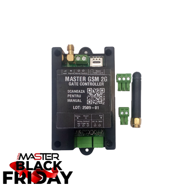 Transforma modul in care controlezi accesul cu releu MASTER GSM 2G – solutia inteligenta si ultra-sigura pentru porti, usi, garaje sau echipamente la distanta. Cu doar un apel gratuit de pe telefonul mobil, dispozitivul recunoaste numarul autorizat, respinge apelul si activeaza instant releul, fara niciun cost suplimentar.